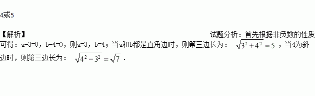 若直角三角形的两条边长为a、b,且满足,则该直角三角形的斜边长为____
