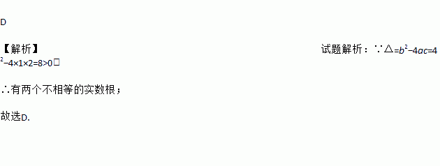 A. 没有实数根 B. 只有一个实数根 C. 有两个相等的实数根 D. 有两个不相等的实数根