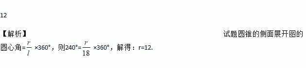 若一个圆锥的侧面展开图是半径为18cm,圆心角为240°的扇形,则这个圆锥的底面半径长是__cm.
