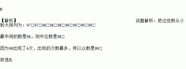 A. 97和98 B. 98和99 C. 98和98 D. 99和99