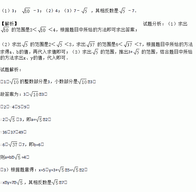 的整数部分,y是其小数部分,请直接写出x﹣y的值的相反数.