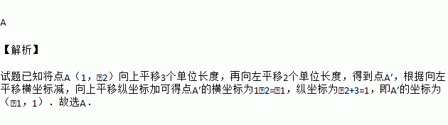 在平面直角坐标系中,将点A(1,﹣2)向上平移3个单位长度,再向左平移2个单位长度,得到点A′,则点A′的坐标是( )