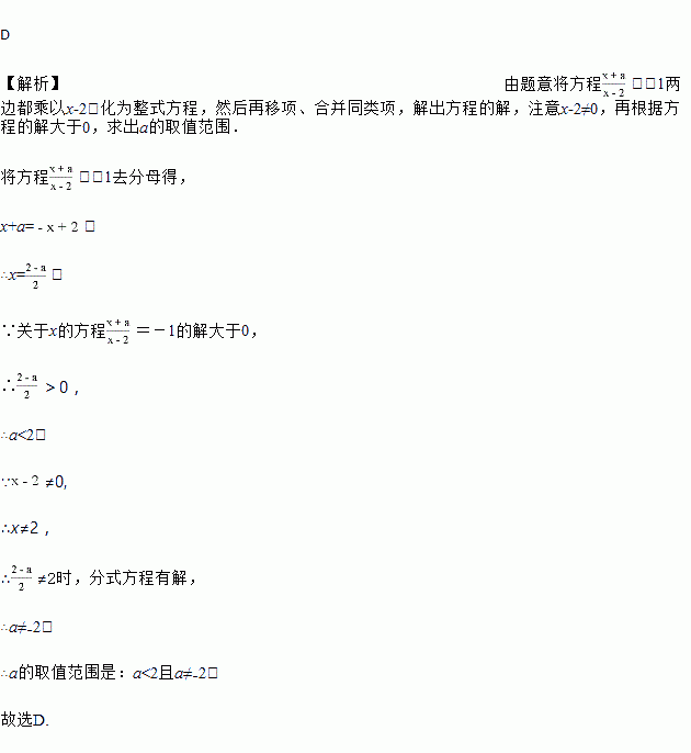 已知关于x的方程=-1的解大于0,则a的取值范围是( )