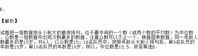 则这些队员年龄的众数和中位数分别是( )