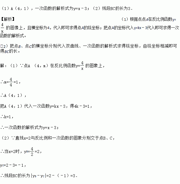 (2)若直线x=2与反比例函数和一次函数的图象分别交于点B、C,求线段BC的长.