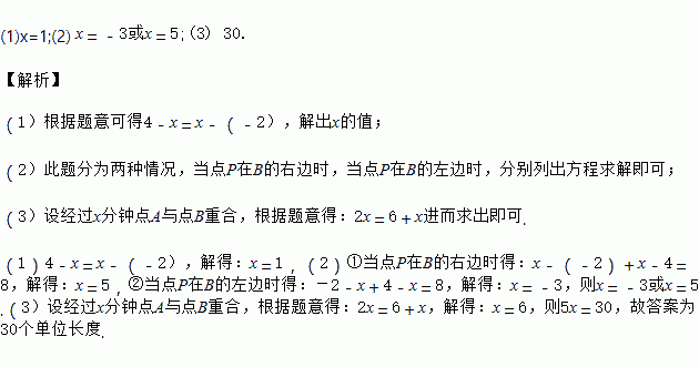 (3)点A,B分别以2个单位长度/分、1个单位长度/分的速度向右运动,同时点P以5个单位长度/分的速度从O点向左运动.当遇到A时,点P立即以同样的速度向右运动,并不停地往返于点A与点B之间.当点A与点B重合时,点P经过的总路程是多少?