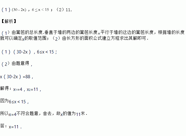 米的篱笆围成,已知墙长为![]()