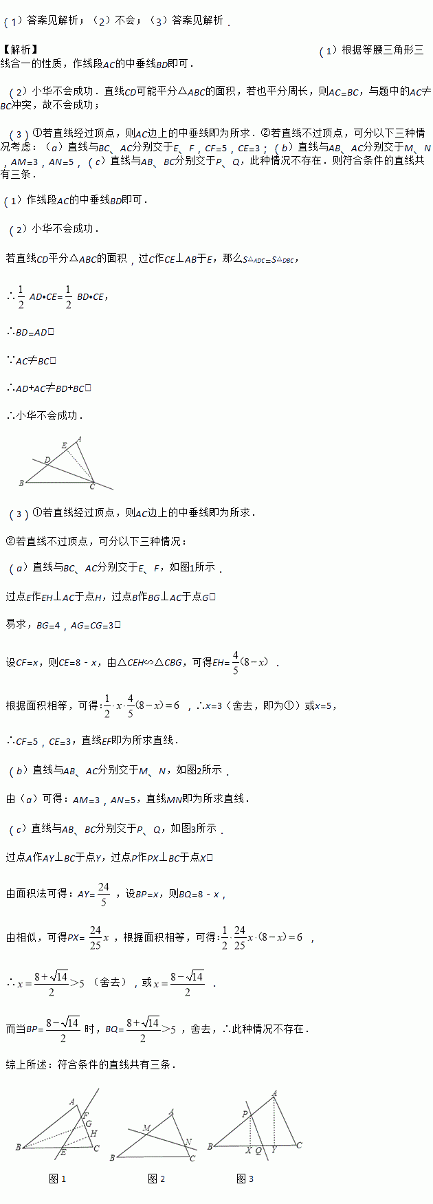 (3)通过上面的实践,你一定有了更深刻的认识.请你解决下面的问题:若AB=BC=5cm,AC=6cm,请你找出△ABC的所有“等分积周线”,并简要的说明确定的方法.