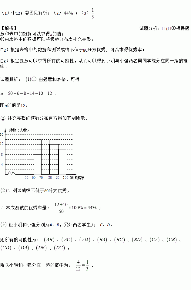 若测试成绩不低于80分为优秀,则本次测试的优秀率是多少?