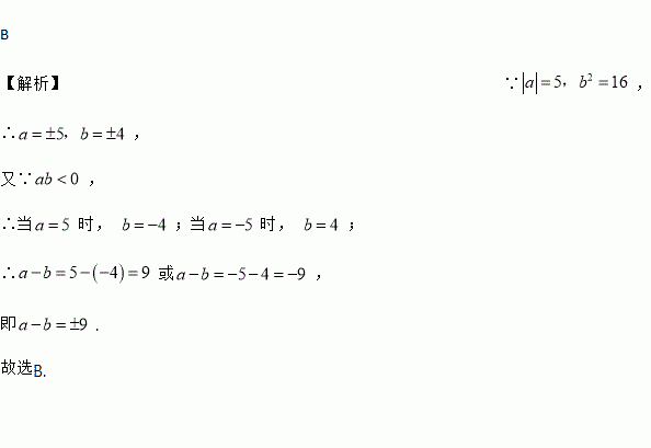 已知|a|=5,b2=16,且ab<0,那么a-b的值为( )
