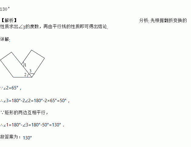 如图,将一个长方形纸条折成如图所示的形状,若已知∠2=65°,则∠1=______.