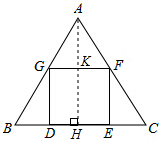 ·ÖÎö ¹ýµãA×÷AH¡ÍBCÓÚH½»FGÓÚK£¬ÉèÕý·½Ðεı߳¤Îªx£¬È»ºóÇó³ö¡÷AGFºÍ¡÷ABCÏàËÆ£¬ÀûÓÃÏàËÆÈý½ÇÐζÔÓ¦±ß¸ßµÄ±ÈµÈÓÚÏàËÆ±ÈÁÐʽ¼ÆËã¼´¿ÉµÃ½â£®