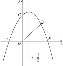 如图,抛物线y=﹣x2+bx+c与x轴交于A、B两点(A在B点左侧),与y轴交于点C,对称轴为直线x=,OA=2,OD平分∠BOC交抛物线于点D(点D在第一象限);