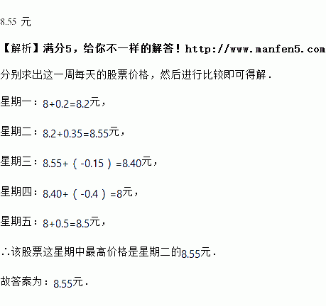 (注:用正数记股票价格比前一日上升数,用负数记股票价格比前一日下降数)该股票这星期中最高价格是________.