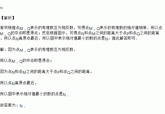 如图,四个有理数在数轴上的对应点分别是、、、,若点,表示的有理数互为相反数,则图中表示绝对值最小的数的点是________.