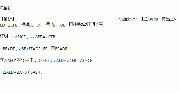 求证:△AED≌△CFB.