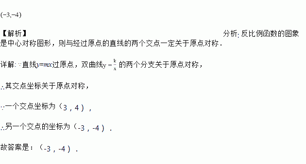已知直线y=mx与双曲线 的一个交点坐标为(3,4),则它们的另一个交点坐标是______.