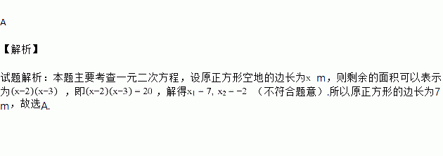 如图,将一块正方形空地划出部分区域进行绿化,原空地一边减少了2m,另一边减少了3m,剩余一块面积为20m2的矩形空地,则原正方形空地的边长是( )
