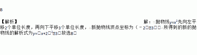 若抛物线y=x2先向左平移2个单位长度,再向下平移3个单位长度,则所得到的新抛物线的解析式时( )