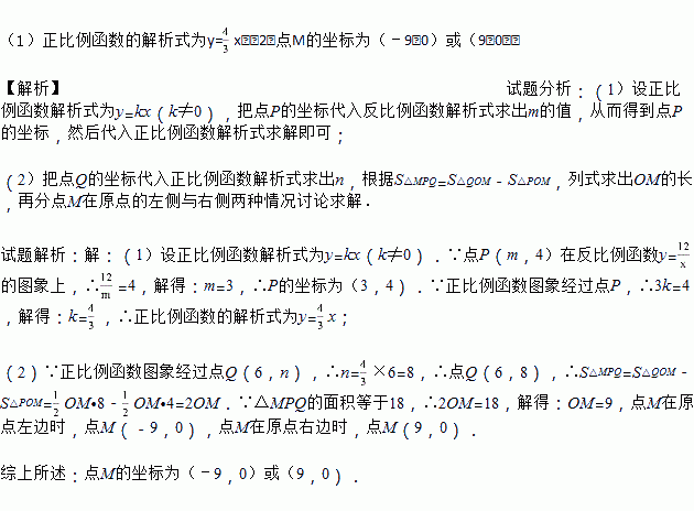 (2)在x轴上求一点M,使△MPQ的面积等于18.