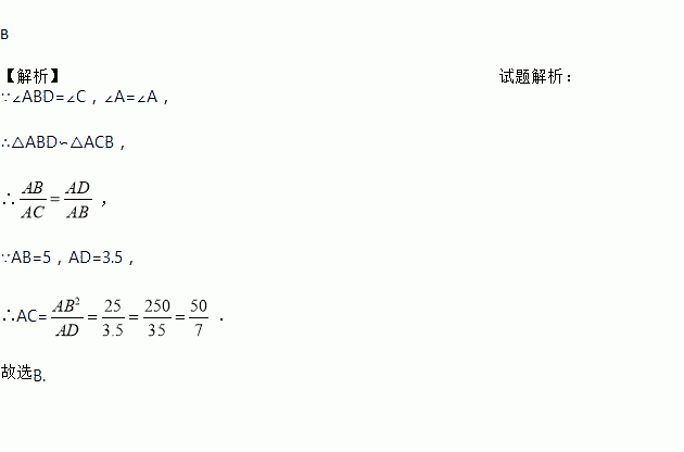 如图,∠ ABD=∠ C, AB=5, AD=3.5,则 AC=( )