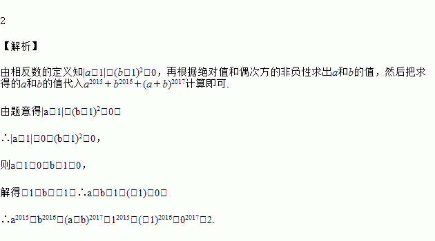 已知|a-1|与(b+1)2互为相反数,求a2015+b2016+(a+b)2017的值.
