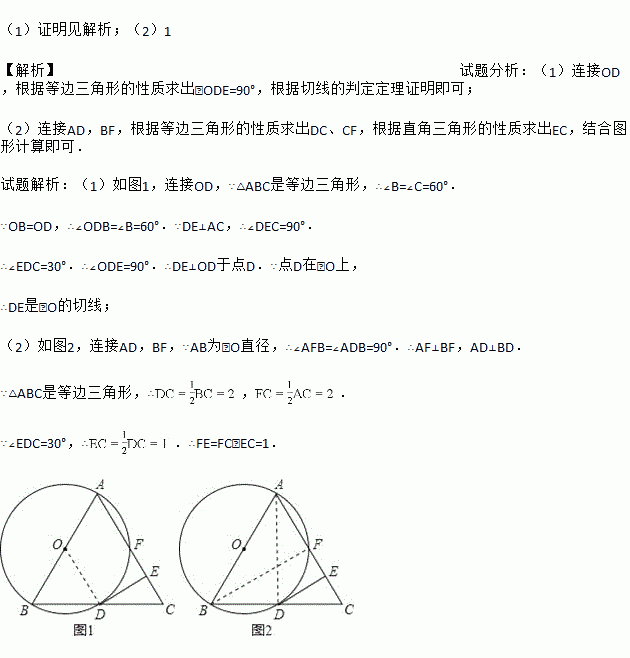 如图,已知△ABC是等边三角形,以AB为直径作⊙O,交BC边于点D,交AC边于点F,作DE⊥AC于点E.