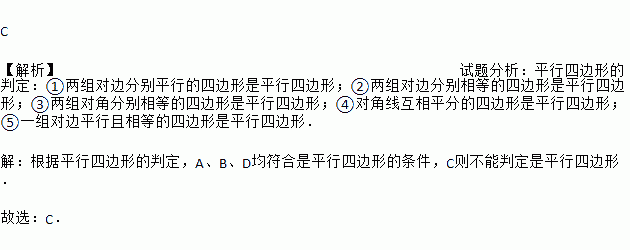 如图,下列四组条件中.不能判定四边形ABCD是平行四边形的是( )