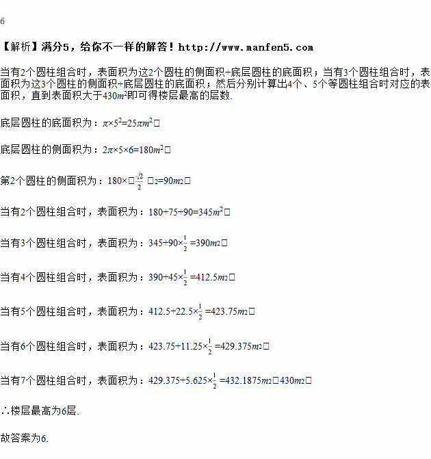 的比例缩小,而楼层的高度也以同样的比例缩小,那么要使得建筑物的表面积不超过平方米(表面积不包括最底层的底面积),楼层最高为________层.![]()