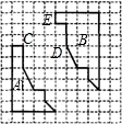 分析:根据A图形在B图形的左边可知应先向右平移图形A,再由点C距点D4个格可知应先向右平移4个格,此时点C与点D重合,再根据点D距E2个格,故应再向上平移2格.