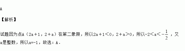 已知a是整数,点A(2a+1,2+a)在第二象限,则a的值是( )
