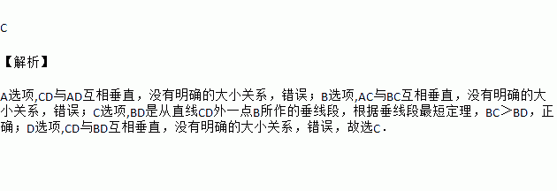 A. CD>AD B. AC<BC C. BC>BD D. CD<BD