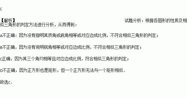 A. 所有的等腰三角形都相似 B. 所有的直角三角形都相似