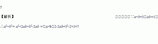 已知a+b=3,ab=1,则a2+b2=______________.
