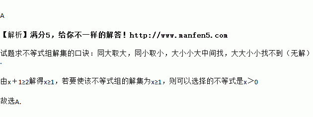 从下列不等式中选择一个与x+1≥2组成不等式组,若要使该不等式组的解集为x≥1,则可以选择的不等式是( )