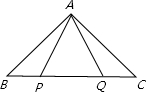 设P、Q为线段BC上两定点,且BP=CQ,A为BC外一动点,如图,当A运动到使∠BAP=∠CAQ时,△ABC的形状是________.