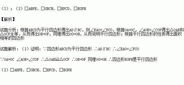 (本题8分)如图1,平行四边形ABCD中,点O是对角线AC的中点,EF过点O,与AD,BC分别相交于点E,F,GH过点O,与AB,CD分别相交于点G,H,连接EG,FG,FH,EH.