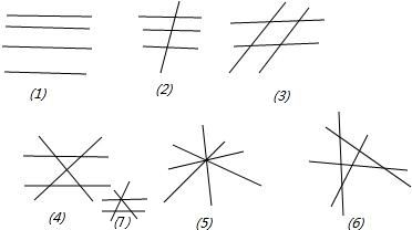 (6)当四条直线两两相交,且不过同一点时,有6个交点;