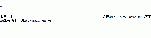 已知点A,B,C三点共线,线段AB=20 cm,BC=8 cm,则线段AC等于( )