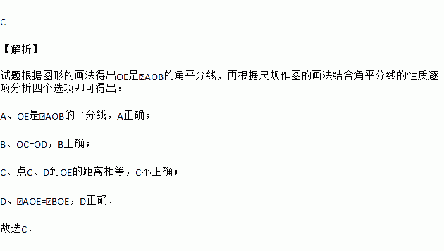 A. OE是∠AOB的平分线 B. OC=OD