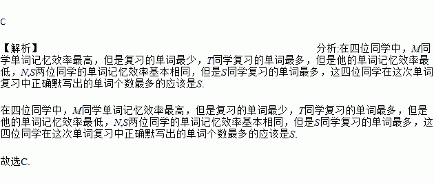 “单词的记忆效率”是指复习一定量的单词,一周后能正确默写出的单词个数与复习的单词个数的比值.右图描述了某次单词复习中四位同学的单词记忆效率![]()