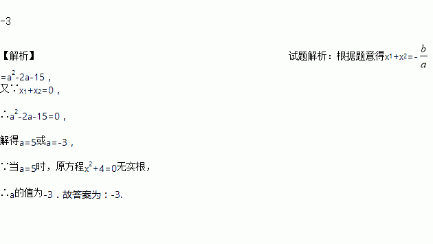 若关于的方程x2-(a2-2a-15)x+a+1=0两个根互为相反数,则的值是___.
