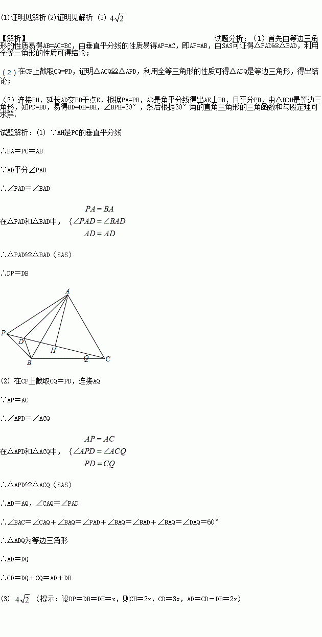 如图P为等边△ABC外一点,AH垂直平分PC于点H,∠BAP的平分线交PC于点D