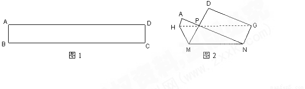 如图(1)的矩形纸片折叠,B、C两点恰好重合落在AD边上的点P处,如图(2),已知∠MPN=90º,PM=3,PN=4,那么矩形ABCD的周长为 。