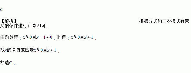 A. x≥1 B. x≤1且x≠0 C. x≥0且x≠1 D. x≠0且x≠1