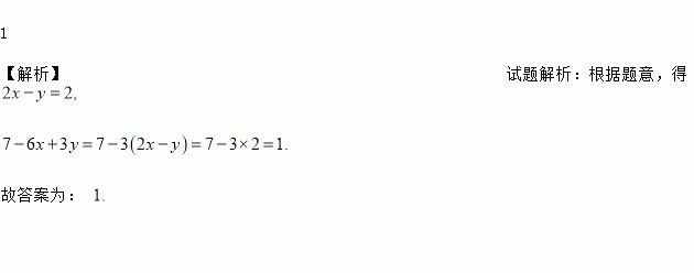 如果代数式2x-y的值是2,那么代数式7-6x+3y的值是___________.