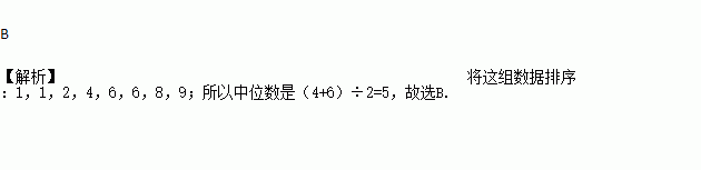 已知数据:2,1,4,6,9,8,6,1,则这组数据的中位数是( )