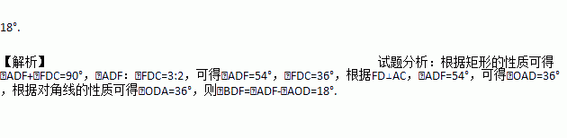 如图,在矩形ABCD中,对角线AC、BD相交于点O,若DFAC,ADF:FDC= 3:2,则BDF=_________.