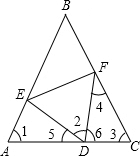 分析:首先根据三角形内角和公式可得∠4+∠6=180°-∠3,再根据平角定义可得∠5+∠6=180°-∠2,再由∠3=∠2,可得∠4=∠5,然后加上条件∠1=∠3,DE=DF可利用AAS证明△ADE≌△CFD.