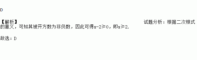 A. x<2 B. x≠2 C. x≤2 D. x≥2